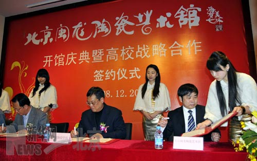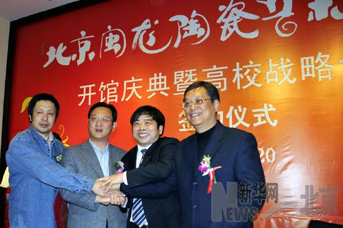 12月20日,中央美術(shù)學(xué)院、清華大學(xué)美術(shù)學(xué)院、景德鎮(zhèn)陶瓷學(xué)院與北京閩龍?zhí)沾伤囆g(shù)館簽署了戰(zhàn)略合作協(xié)議書。雙方將積極探索高等院校陶瓷創(chuàng)意設(shè)計(jì)能力與陶瓷企業(yè)實(shí)踐相結(jié)合的發(fā)展模式,力求使高校的陶瓷原創(chuàng)設(shè)計(jì)通過陶瓷企業(yè)的論證,快速投入應(yīng)用和市場營銷,從而形成具有自主知識產(chǎn)權(quán)的中國陶瓷制品。