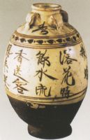 圖片名稱: 磁州窰白釉醬彩詩(shī)句紋四繫罐