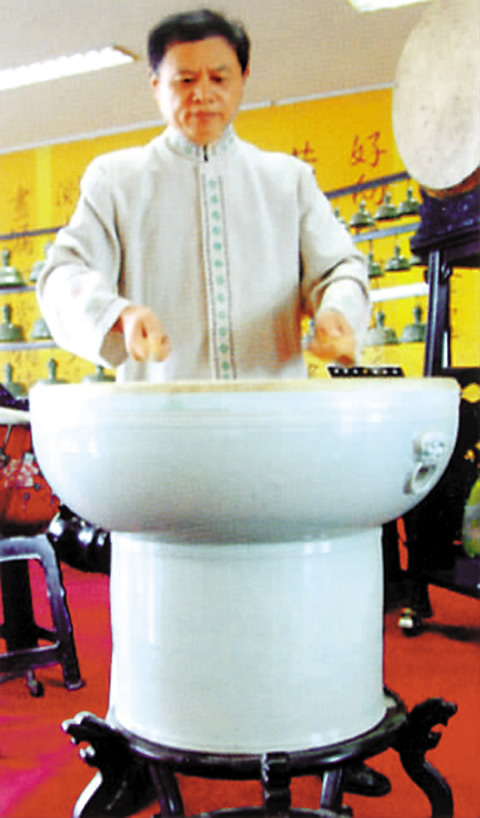 就從那時(shí)候開(kāi)始,正在攻讀大專中文的章均立開(kāi)始從唐詩(shī)中尋找答案,因?yàn)楹I?ldquo;陶瓷之路”始于唐朝。很快,他從大詩(shī)人白居易的《醉贈(zèng)劉二十八使者》詩(shī)中找到了佐證:“為我引杯添酒飲,與君把箸擊盤(pán)歌”。在另一首《敲酒盞唱短歌》中,甌樂(lè)蹤跡更得彰顯:“越器敲來(lái)曲調(diào)成,腕頭句滑間輕清,隨風(fēng)搖曳有余韻,測(cè)水淺深多泛聲。”幾經(jīng)考據(jù),章均立確證慈溪上林湖作為我國(guó)古代海上“陶瓷之路”起點(diǎn)的同時(shí),更是甌樂(lè)樂(lè)器的重要燒制場(chǎng)所。他和同事們一邊復(fù)原考古成果,一邊尋根問(wèn)“書(shū)”,不久自發(fā)組織的慈溪甌樂(lè)演奏團(tuán)開(kāi)始活動(dòng)了。初創(chuàng)的日子,演奏團(tuán)整理挖掘已經(jīng)失傳千年的甌樂(lè),并與慈溪市越窯青瓷研究所密切合作,根據(jù)史書(shū)記載及考古發(fā)現(xiàn),仿制出了用于演奏的盤(pán)、杯、蓋、爐蓋、腰鼓、火照、塤、鳥(niǎo)哨等40多件甌樂(lè)。同時(shí),他們以流行于三北地區(qū)的姚灘音樂(lè)為素材,寫(xiě)出了《九秋風(fēng)露越窯開(kāi)》、《豐收鑼鼓》等一批作品,還嘗試用青瓷排練了《梅花三弄》、《春江花月夜》等名曲。