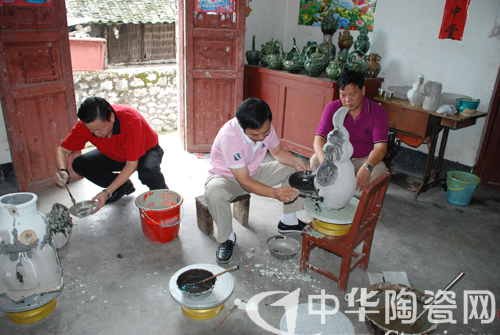 為使參展作品做工更加精細(xì),更具藝術(shù)性和觀賞性,平塘縣邀請3名省內(nèi)陶瓷研究資深專家深入牙舟鎮(zhèn),與當(dāng)?shù)刂铺绽纤嚾寺?lián)手創(chuàng)作,在保持牙舟陶傳統(tǒng)風(fēng)格的同時,又融入現(xiàn)代創(chuàng)作元素,努力提高作品質(zhì)量檔次。此次赴上海世博會貴州館參展的牙舟陶作品為一對身作節(jié)日盛裝的苗族男女,高均為1.2米,由三個不同規(guī)格的花瓶組成。據(jù)專家介紹,參展作品身上的圖案代表民族服飾,加上銀耳環(huán)、銀片、金項圈等元素,將其與民族文化有機地結(jié)合起來,彰顯民族之魂。