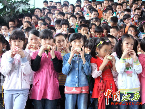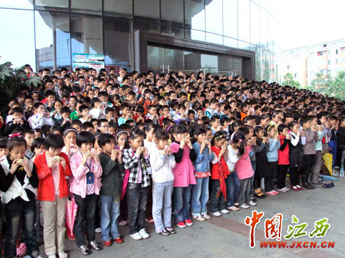 景德鎮(zhèn)第一小學的800名小學生在此吹響手中的瓷笛。
