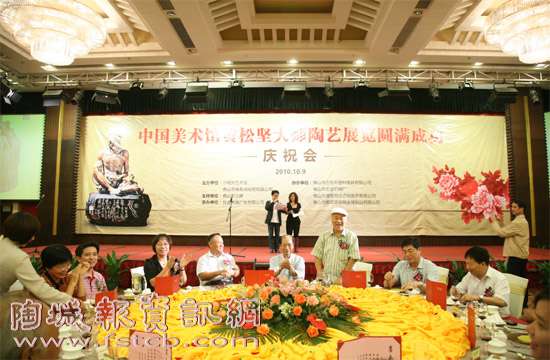10月9日,“黃松堅大師中國美術(shù)館陶藝展覽圓滿成功慶功會”在佛山舉行,佛山市政協(xié)主席蔡河義、佛山市委常委、宣傳部長葉志容等領(lǐng)導(dǎo)和中國著名雕塑藝術(shù)家潘鶴中國工藝美術(shù)大師劉澤棉、廖洪標、梅文鼎、潘柏林、劉炳出席了慶功會!
