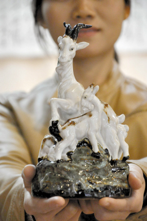 在美陶廠陳列室,記者看到這三套作品色彩鮮艷、明亮,每只“動物”造型都不大,表情各異,形象也做得相當卡通,極富石灣陶塑特色。據了解,“十二生肖”以及“五羊賀歲”這二件作品是由做動物陶瓷最出名的石灣陶藝大師霍蘭十多年前所創(chuàng)作。