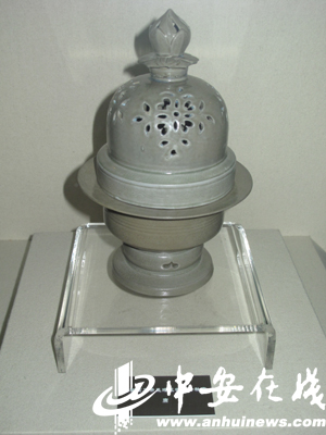 產(chǎn)于唐代的越窯高足帶蓋暗花鏤空青釉熏
