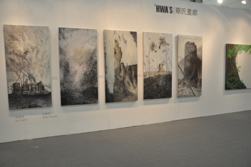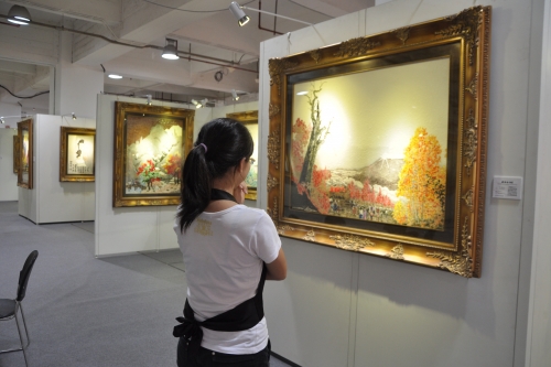 主題為“藝術(shù)就是財(cái)富”的2011上海藝術(shù)博覽會(huì)14日上午在上海世貿(mào)商城開幕。今屆的博覽會(huì)有12個(gè)國家的155家畫廊參加展覽,全場有數(shù)千件油畫、國畫、版畫、雕塑、水彩、攝影、裝置、陶瓷等作品在四個(gè)展館參與交易,其規(guī)模繼續(xù)“領(lǐng)跑”亞洲各大藝術(shù)品交易盛會(huì)。藝博會(huì)于18日結(jié)束。這是記者13日晚在預(yù)展上拍攝的一組畫廊圖。