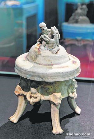 熏爐蓋上的男子奮力掰開的獅口是熏煙的出口。