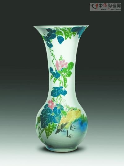 清宣統(tǒng)三年醴陵釉下五彩扁豆雙禽圖鳳尾瓶,曾在1915年美國(guó)舊金山巴拿馬國(guó)際博覽會(huì)榮獲金獎(jiǎng)。
