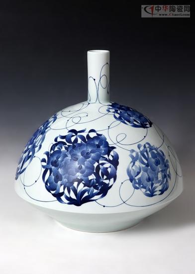鄒樂(lè)陶瓷作品現(xiàn)代青花《風(fēng)隨花動(dòng)》。
