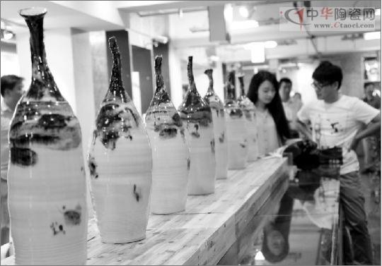 武漢益合美術(shù)館內(nèi),陳小青“花非花”陶瓷藝術(shù)展展出現(xiàn)場。
