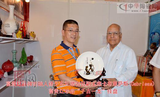 專訪結(jié)束后,中國(guó)駐古巴領(lǐng)事館張拓大使先后帶引古巴部長(zhǎng)會(huì)議副主席卡布里薩斯和外貿(mào)外資部部長(zhǎng)羅德里參觀了富貴紅展館,富貴紅品牌創(chuàng)始人徐少東分別向他們贈(zèng)送了富貴紅文化禮品《龍盤(pán)》和《龍瓶》。