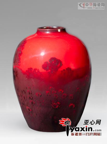 英國道爾頓紅釉黑彩風(fēng)景精陶瓶