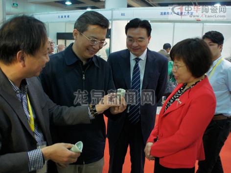 麗水市委書(shū)記、市人大常委會(huì)主任王永康在龍泉展區(qū)一邊認(rèn)真欣賞參展的精品新作,一邊和大師、藝人們親切交談。王永康指出,要進(jìn)一步研究和挖掘龍泉青瓷、龍泉寶劍所蘊(yùn)藏的人文價(jià)值、藝術(shù)價(jià)值、經(jīng)濟(jì)價(jià)值,充分發(fā)揮工藝美術(shù)大師的引領(lǐng)作用,把劍瓷產(chǎn)業(yè)做精做美、做大做強(qiáng)。要整合茶、竹、香菇和靈芝等地方特色文化產(chǎn)業(yè)資源,加大城市品牌宣傳推介,提升城市文化品位,推動(dòng)龍泉生態(tài)文化產(chǎn)業(yè)大繁榮大發(fā)展。