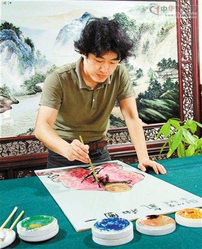 昨日,來自中央美院的畫家董俊良現(xiàn)場創(chuàng)作,畫在瓷板上的畫作經(jīng)畫窯燒制后即成瓷畫。