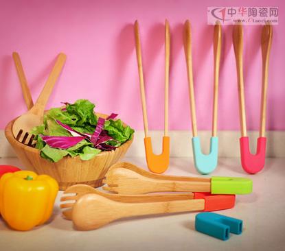 如圖所示五彩繽紛的廚房用具是國內(nèi)首創(chuàng)的竹子結(jié)合硅膠產(chǎn)品, 為廣東木森日用品有限公司的發(fā)明專利產(chǎn)品。食用級(jí)的安全硅膠材料除了有增加摩擦力防滑功能外,更有一種柔軟舒服的手感。兩種環(huán)保材質(zhì)完美結(jié)合,為生硬的廚房增添了一道靚麗的風(fēng)景。