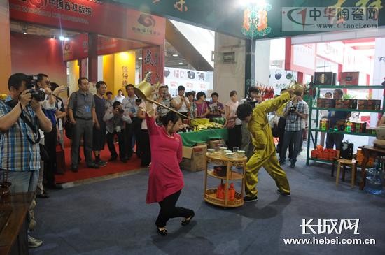 本屆展會內(nèi)容比較豐富,活動較為精彩,其中在開幕當天13號上午的紫砂壺藝術講座,由宜興紫砂行業(yè)協(xié)會秘書長紫砂文化研究會時順華會長,中國陶瓷藝術大師邱玉林先生主講,下午由來自云南農(nóng)業(yè)大學教授盛軍先生講關于茶與養(yǎng)生方面的知識講座,另外特別是吉祥茶業(yè)、介福茶業(yè)還帶來了陣容龐大的表演團隊每天表演,為現(xiàn)場助興。
