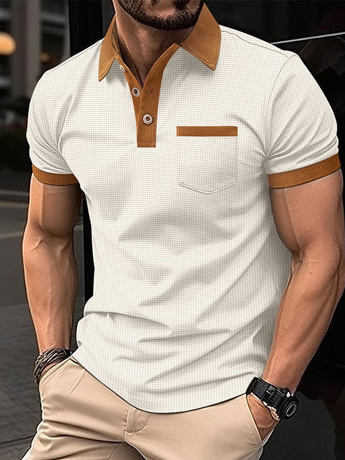 Men's Waffle Fabric Fashion Casual Polo Shirt (With Pockets)